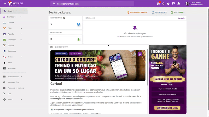 A criação do WOD no Next Fit reproduz a experiência da lousa informativa encontrada nos BOX e Estúdios, garantindo que todos tenham acesso fácil e claro ao que está planejado para cada dia de treino diretamente pelo aplicativo do aluno.