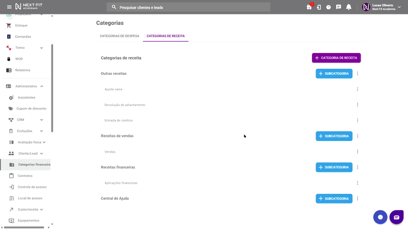 Cadastrando categorias e subcategoriasÉ crucial personalizar categorias e subcategorias conforme os grupos de DRE do sistema. O Next Fit facilita essa tarefa, oferecendo configurações iniciais com categorias e subcategorias já vinculadas aos grupos de DRE, personalizadas para seu negócio, proporcionando uma base sólida para análise e gestão financeira.