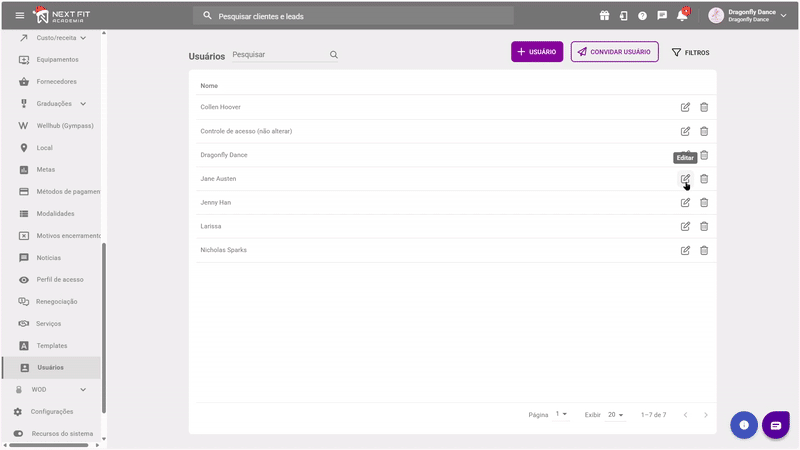 Caso o usuário não tenha sido criado, verifique nosso artigo Como criar um usuário para o colaborador (administrador, secretária e instrutor)?