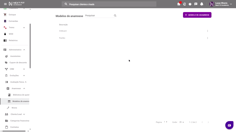 1º passo - Habilitando modelo para envioPara a anamnese ser enviada para resposta, é necessário que o modelo esteja habilitado para ser respondido pelo aluno(a). Sendo assim, acesse Administrativo > Avaliação Física > Anamnese > Modelos de Anamnese.