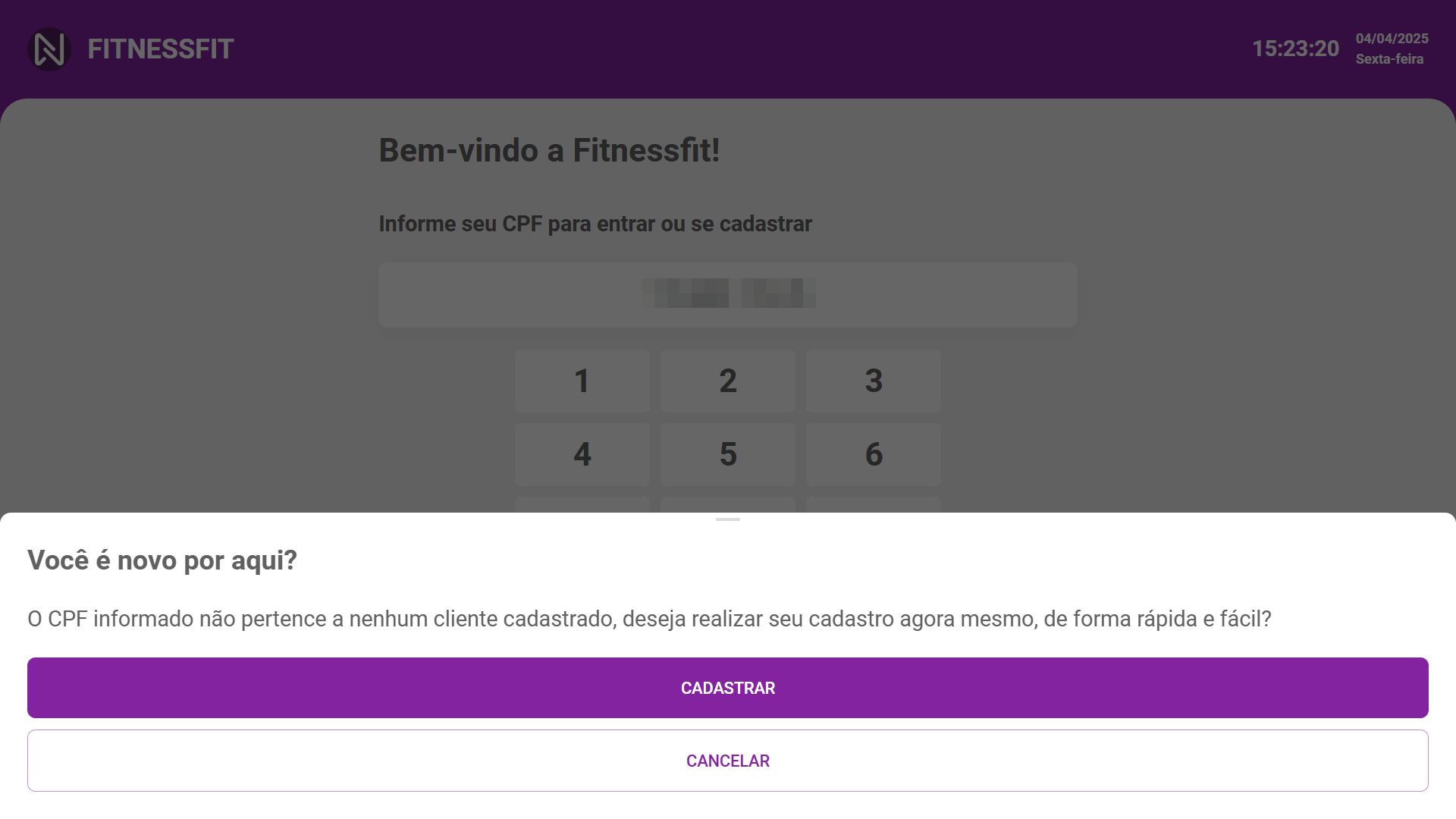 Tutorial em vídeoRealizando o acesso Para acessar o aluno deve informar seu CPF, e caso não seja localizado um cadastro, será redirecionado para a tela de auto cadastro do totem.