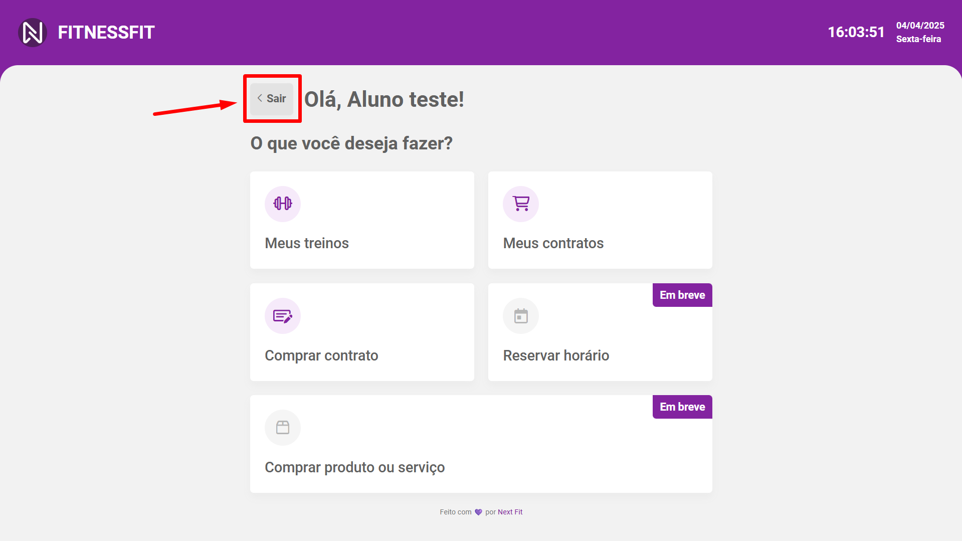 Alternativamente, você ao realizar uma compra de contrato ou impressão de treino, o totem automaticamente finaliza a sessão do aluno.