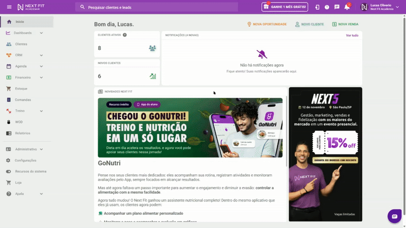 O GoNutri é uma nova ferramenta poderosa no aplicativo do aluno. Ele permite que você ofereça planos alimentares personalizados por IA, criando uma nova fonte de receita para seu negócio e aumentando o engajamento e a retenção dos seus clientes. Você vende o serviço, e a Next Fit cuida de toda a tecnologia.