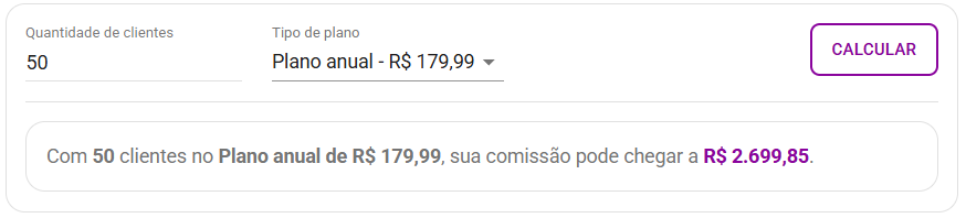 Dessa forma, em um exemplo prático, caso um cliente adquira o GoNutri no dia 01/11/2025 e realize o pagamento via cartão de crédito, a primeira comissão será gerada somente no dia 01/12/2025 (30 dias após o pagamento) e, caso o pagamento tenha sido parcelado, as próximas comissões também seguem sucessivamente a cada 30 dias.