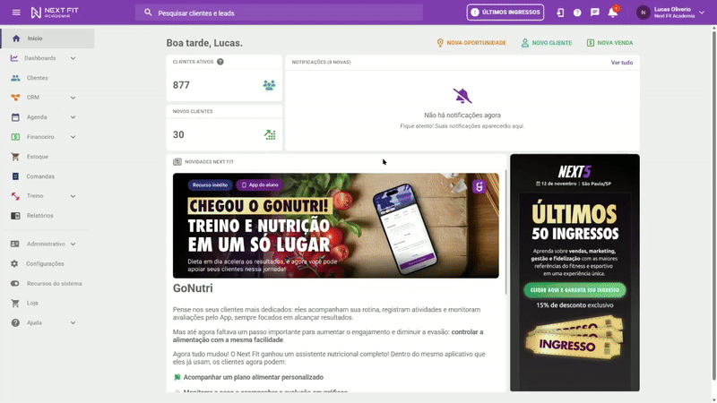 O cliente, durante a aquisição do GoNutri, irá optar pela assinatura trimestral ou a assinatura anual e, após o pagamento realizado, a comissão será gerada automaticamente pelo Next Fit Pay; onde 30% do valor pago pelo cliente será comissionado para você, gestor.