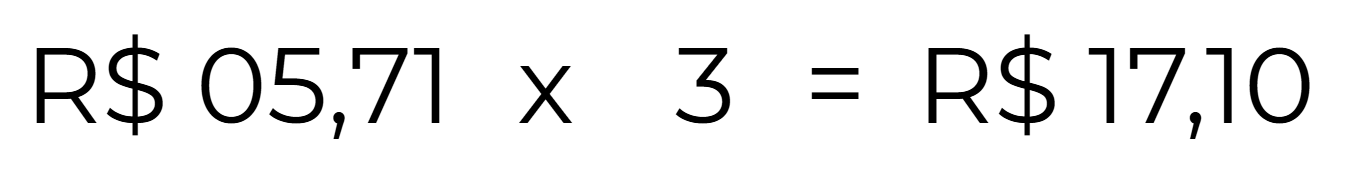Como o pagamento deste cliente foi parcelado em 3 vezes, haverá 3 registros como este, com os mesmos valores. Portanto, você pode realizar o cálculo do valor final (R$ 5,71) e multiplicá-lo por 3, resultando em R$ 17,10 que é o valor referente a 30% do total pago pelo aluno (R$ 56,99).