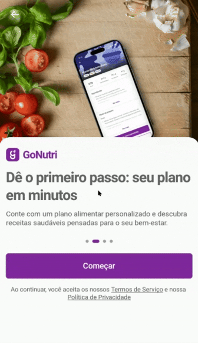 O GoNutri é seu assistente pessoal de nutrição. Ele usa Inteligência Artificial para criar um plano focado nos seus objetivos e te ajuda a registrar suas refeições de forma simples. Este guia mostra o passo a passo para realizar a assinatura do recurso.