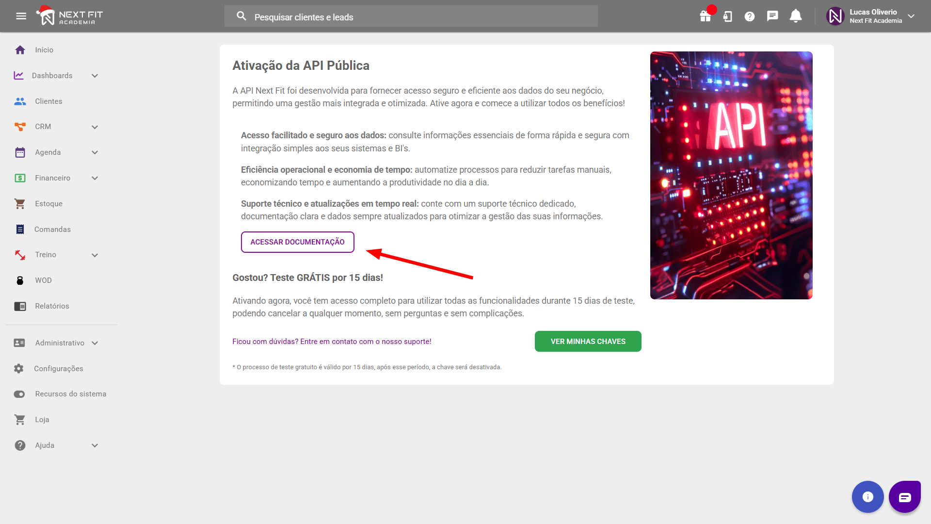Olá! Neste tutorial você vai aprender como ativar e utilizar a API do Next Fit!